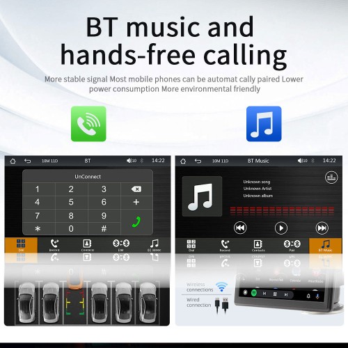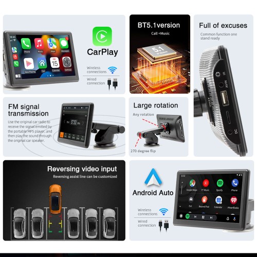 Свързва се безжично към вашия смартфон чрез Bluetooth, елиминирайки необходимостта от кабели или допълнителни адаптери. Освен това преносимият CarPlay / Android Auto дисплей може лесно да се монтира на таблото във всяка кола. Също така той разполага със система за захранване, която гарантира, че устройството остава заредено по време на употреба.