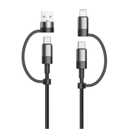 Кабел за данни DeTech DE-54UCI, 4в1 USB-Lightning/Type-C Type-C - Type-C, 1.0m, Черен - 40535