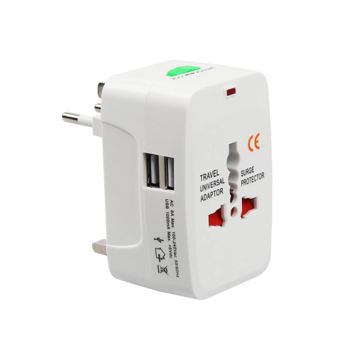 Универсален преходник - зарядно No brand, 2xUSB, 1.0A, EU/US/UK/AU към EU/US/UK/AU, 220V, Бял - 17708