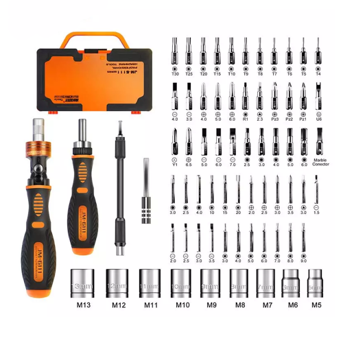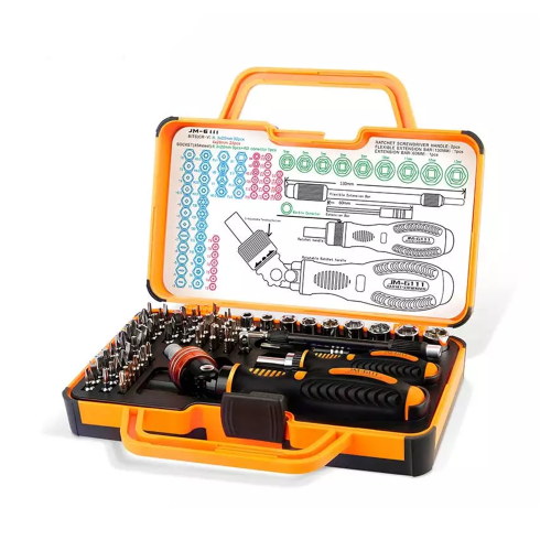 Комплект отвертки, накрайници и вложки Jakemy JM-6111, 69 Части, CR-V, Стомана, Оранжев - 17632
