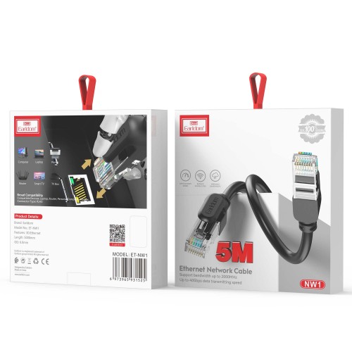 Кабел Earldom ET-NW1 LAN - LAN, CAT6 UTP, 5м, Черен - 18389