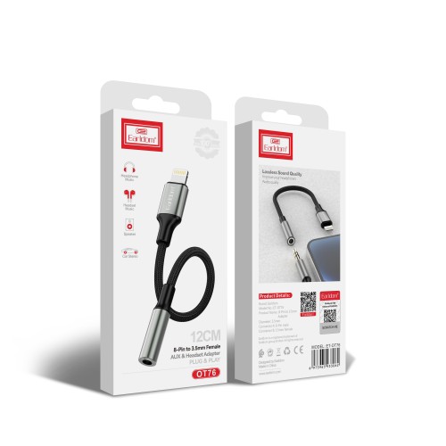 Преходник Earldom ET-OT76, Lightning към 3.5мм (F), Черен - 40365