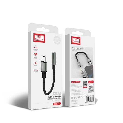 Преходник Earldom ET-OT77, Type-C към 3.5мм (F), Черен - 40364