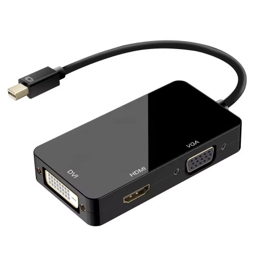 Преходник DeTech, Mini DisplayPort (Thunderbolt) - DVI, VGA, HDMI, Черен - 17859